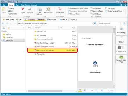 If you click [Open] or [Annotations] with 11 or more documents selected, only the first document displayed at the top of the list on the File List View Window is opened in Desktop Editor.