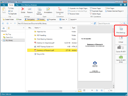 If you select the [Save the original document as Canon Desktop Document] check box in [System Settings], the original document is stored in the IWB document.
