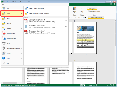 A maximum of 10 documents can be opened with Desktop Editor by clicking [Open] or [Annotations].