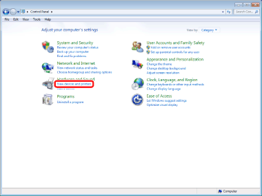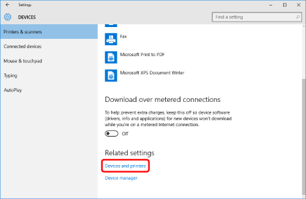 Select [Devices and printers] in the [Printers & scanners] menu.