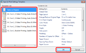 Select a template to use when printing. For more information on the procedure, see step 3.