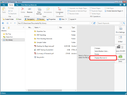 Right-click (printer output button) or (fax output button) to display the Remote UI for, and select [Display Remote UI].
