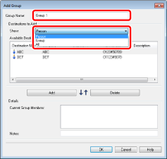 To delete an added destination from [Current Group Members], select the destination and then click [Delete].