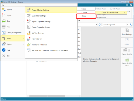 The registered Personal Button is deleted from Desktop Browser, but the button for the Quick Menu of the imageRUNNER ADVANCE device is not deleted.