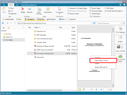 for the output button displayed on the ribbon or toolbar and selecting [Select Button Color]. If an output button is not displayed on the ribbon or toolbar, see the following to display one. |
