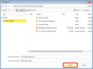 [Convert to a PDF document, and save a PDF document in the library of iW Desktop]