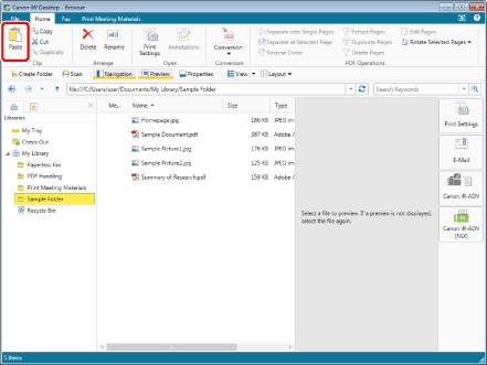 If the [Confirm if the document you dragged has been moved or copied] check box is selected, a menu for selecting moving or copying is displayed. Select [Copy Here] to duplicate the document.