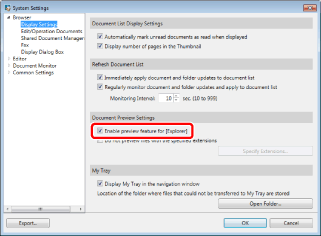[System Settings] > [Browser] > [Display Settings] > [Enable preview feature for [Explorer]]