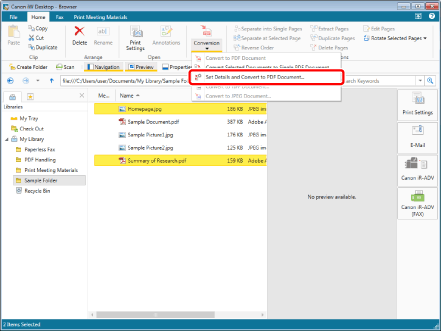 (Conversion) on the ribbon, and select [Set Details and Convert to PDF Document].