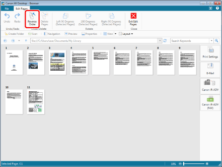 If you reverse the page order of a PDF document with an attribute such as "Read-only" (Windows), the attribute will be invalidated in the PDF document after reversing the page order.