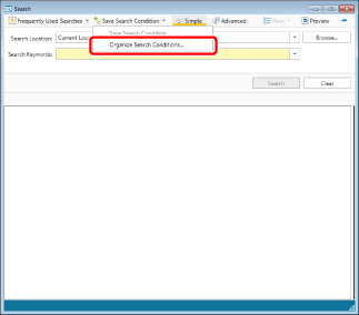 Click for (Save Search Condition) on the Search Screen, and select [Organize Search Conditions].