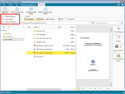 (Rotate Selected Pages) on the ribbon and select the rotation angle