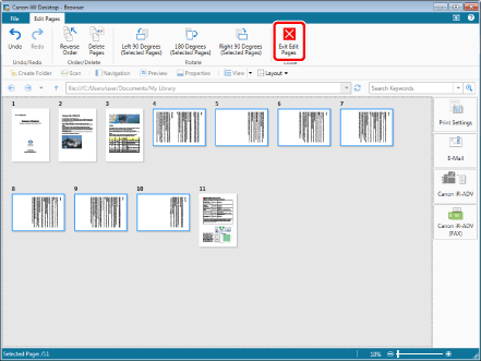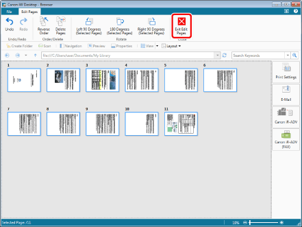 When using the thumbnail view, multiple pages can be selected by clicking them while holding down the [Shift] or [Ctrl] key on the keyboard.