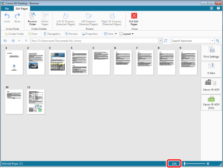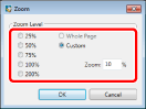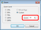 You can specify a magnification factor in units of 1%. If you enter a value greater than the upper limit (200%) or smaller than the lower limit (5%), pages are automatically displayed at the available magnification factor closest to the value you specified. If a number containing a decimal point is entered, the number automatically changes to the previously set value.
