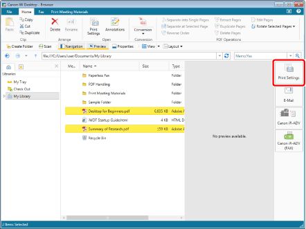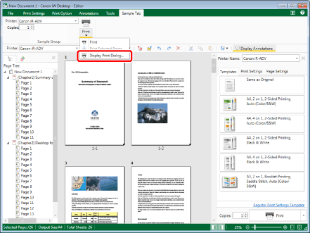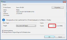 If the [Display print/send fax dialog] check box is selected, the [Print] dialog box is displayed. For more information on using the [Print] dialog box to print documents, see the following.