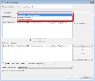 When you select an address added to [Destination Address] and click [Edit], the [Edit New Destination Addresses] dialog box is displayed and you can edit the selected address.