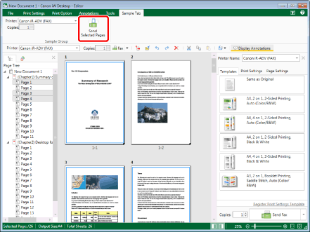 (Fax) on the ribbon, and select [Send Selected Pages]