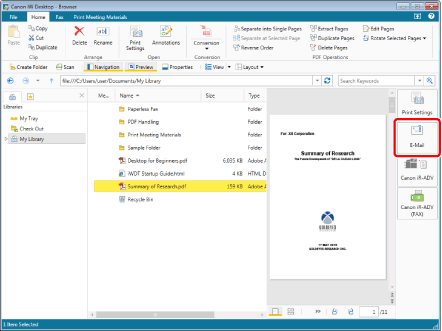 You can convert documents registered in a library to a PDF document and attach them to an e-mail.