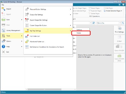 When reconfiguring or deleting an already registered My Tray, it cannot be configured or deleted if there are documents in the My Tray. Delete the documents from within the My Tray before configuring or deleting it.