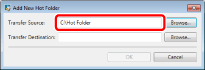 Even when you delete the Hot Folder settings by using the abovementioned steps, the Windows Folder which has been specified as the source folder is not deleted.