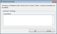 The [Enter Comments] dialog box can also be displayed by selecting a My Tray document and clicking (Comments) on the ribbon or (Comments) on the toolbar. If tool buttons are not displayed on the toolbar of Desktop Browser, see the following to display them.