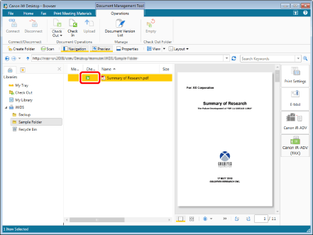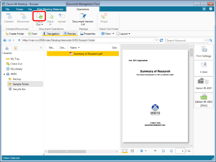 When you select a Document Server Library for which no connection has been established, the library must be connected. For more information on connecting, see the following.