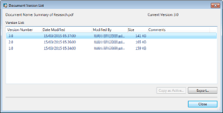 You can select a previous version of a document from [Version List] in the [Document Version List] dialog box and click [Copy as Active] to save the selected version of the document as the newest version. For more information, see the following.