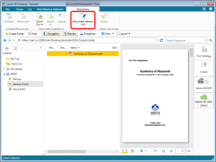 You can select a previous version of a document saved in a Document Server Library and save it in a Windows Folder.