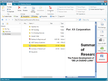 This section describes the procedure when the Microsoft Word application is registered on the output bar.