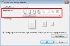 The number of registered templates can be checked in the [Manage Print Settings Templates] dialog box. For information on the [Manage Print Settings Templates] dialog box, see the following. |