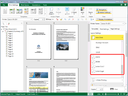 This function can only be used when you select a Canon printer and the [Use print settings of Editor] check box on the [Print Settings] tab on the Details Window, the ribbon command, or the tool button.