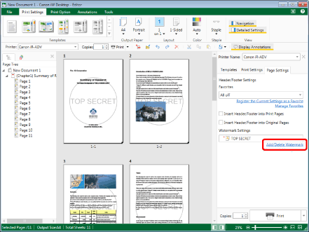 If you added multiple watermarks to [Currently Set Watermarks] in the [Add/Delete Watermark] dialog box displayed by clicking [Add/Delete Watermark] on the [Page Settings] tab on the Details Window, the watermark pull-down list on the [Page Settings] tab on the Details Window changes to [Custom].