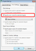Select the [Specify color mode for selected chapter] check box on the [Print Settings] tab.