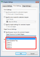 You can configure the paper source settings for the specified chapter differently from the entire document.