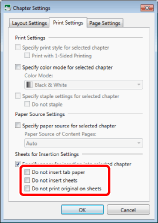 Select the [Specify paper for insertion into selected chapter] check box on the [Print Settings] tab.