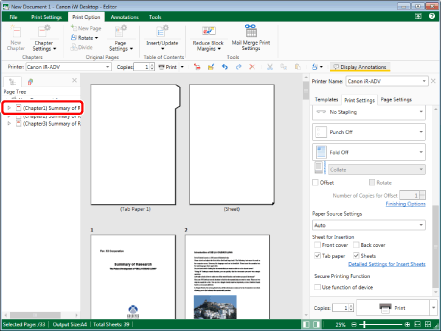 Canceling Tab Paper/Sheets Inserted for the Entire Document on a Chapter Basis