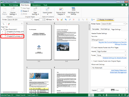 (Chapter) for the chapter to cancel the header/footer settings for on the [Page Tree] tab on the Navigation Window.