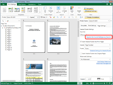 (Favorites) on the ribbon and select [All off].If you edit the header/footer settings after selecting a favorite, the [Favorites] pull-down list in the Details Window > [Page Settings] tab > [Header/Footer Settings] changes to [(Change) Custom].