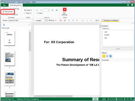 Specifying a Database When Starting the Mail Merge Print Settings Mode
