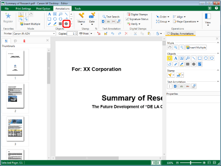 This operation can also be performed with the tool buttons on the toolbar. If tool buttons are not displayed on the toolbar of Desktop Editor, see the following to display them.