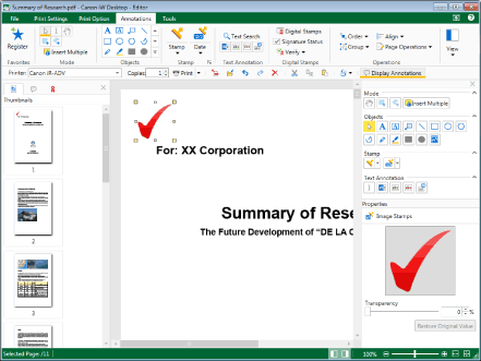 When the edge of the stamp exceeds the edge of the page, the size of the stamp is automatically reduced to fit the page while the aspect ratio of the image is maintained.