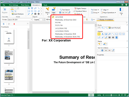 If you click this, the [Edit Date and Time] dialog box is displayed. You can edit the date display format in the [Edit Date and Time] dialog box. For more information, see the following.