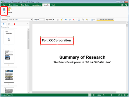 If you perform the paste operation when the annotation to be copied/cut is deselected, the copied/cut text string is pasted as a