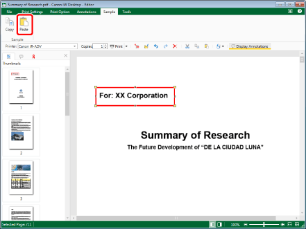 When the next page is specified as the paste destination, the annotation is pasted in the same position as the copy or cut source.