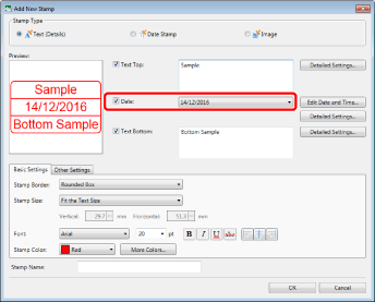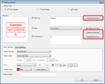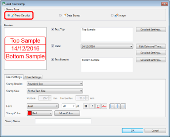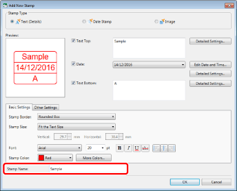 If you do not enter a name in [Stamp Name], a name is automatically set from the text entered in [Text Top]/[Text Bottom].