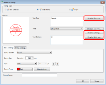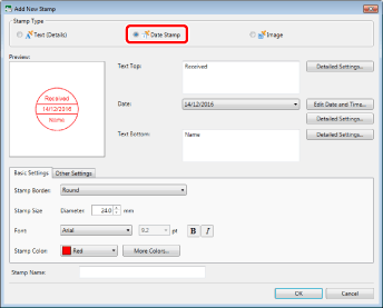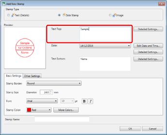 If you do not enter a name in [Stamp Name], a name is automatically set from the text entered in [Text Top]/[Text Bottom].