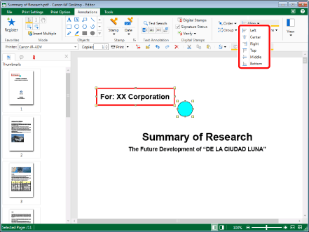 [Left]: The left edge of each selected annotation is aligned with the left edge of the leftmost annotation.