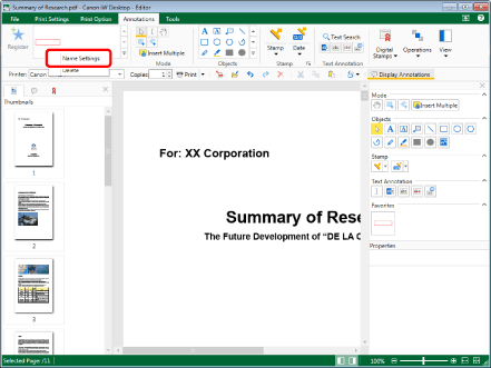 You can delete, rename, change the display order of, and export the favorite stamps of annotations registered in Favorites.