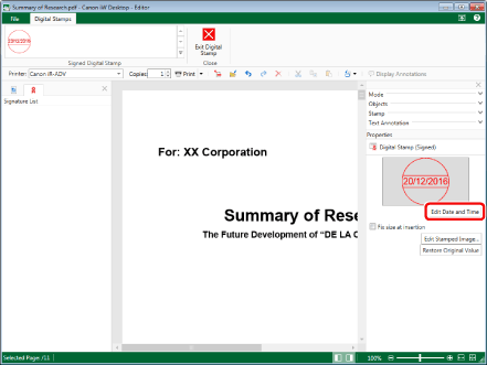 You cannot click [Edit Date and Time] for a digital stamp that does not contain a date. For information on adding a date to a digital stamp, see the following.