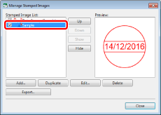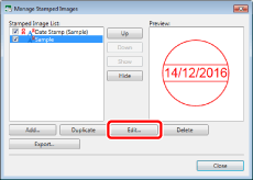 The stamped images that were automatically registered during the installation cannot be edited. However, the stamped images that are duplicated from these stamped images can be edited. For information on how to duplicate stamped images, see the following.